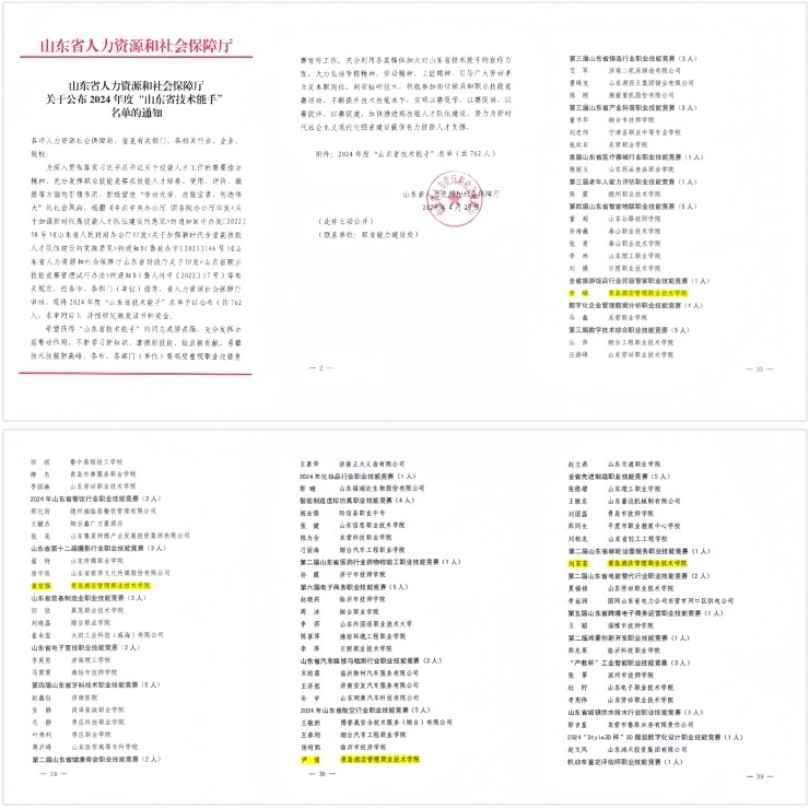 本网讯(酒店管理学院 艺术学院)近日,山东省人力资源和社会保障厅印发了《关于公布2024年度“山东省技术能手”名单的通知》,万象城官网李峰、袁宏强、尹俊、刘菲菲四位教师荣获“山东省技术能手”称号,充分展现了学校师资队伍的技术实力和产教融合的显著成效。