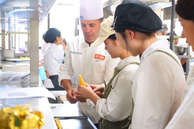 此次活动基于两校合作框架协议,旨在提升学生结合、使用本地食材烹饪法式甜点与咸点的技术,加强在英语环境中进行展示与沟通的能力。活动期间,学校西式烹饪工艺专业学生学习了法式甜点、咸点与热菜基础技法,创作演示了法国开胃晚餐式自助餐具体流程,并用英语进行菜品介绍。活动同期在教工餐厅举行“法式美食教学成果汇报展示会”,集中展示了本次活动实训成果,赢得了一致好评。